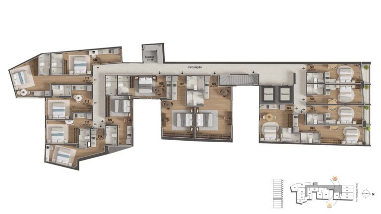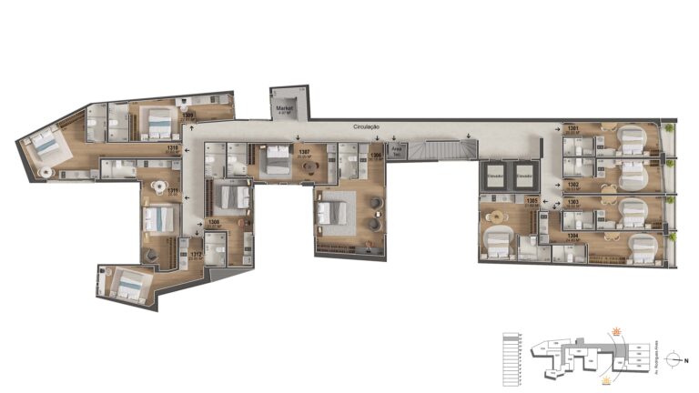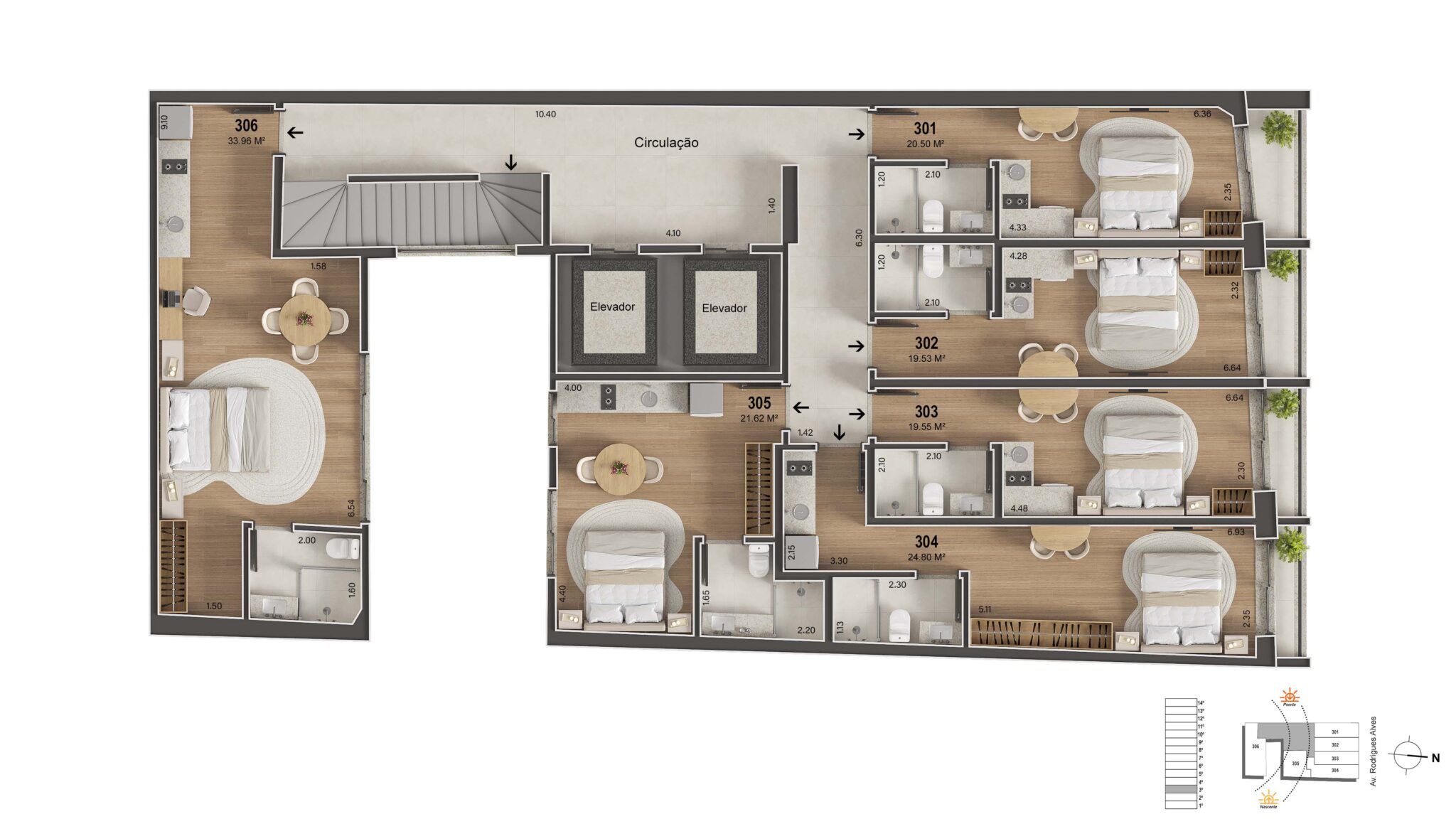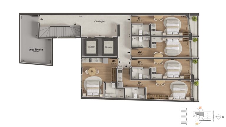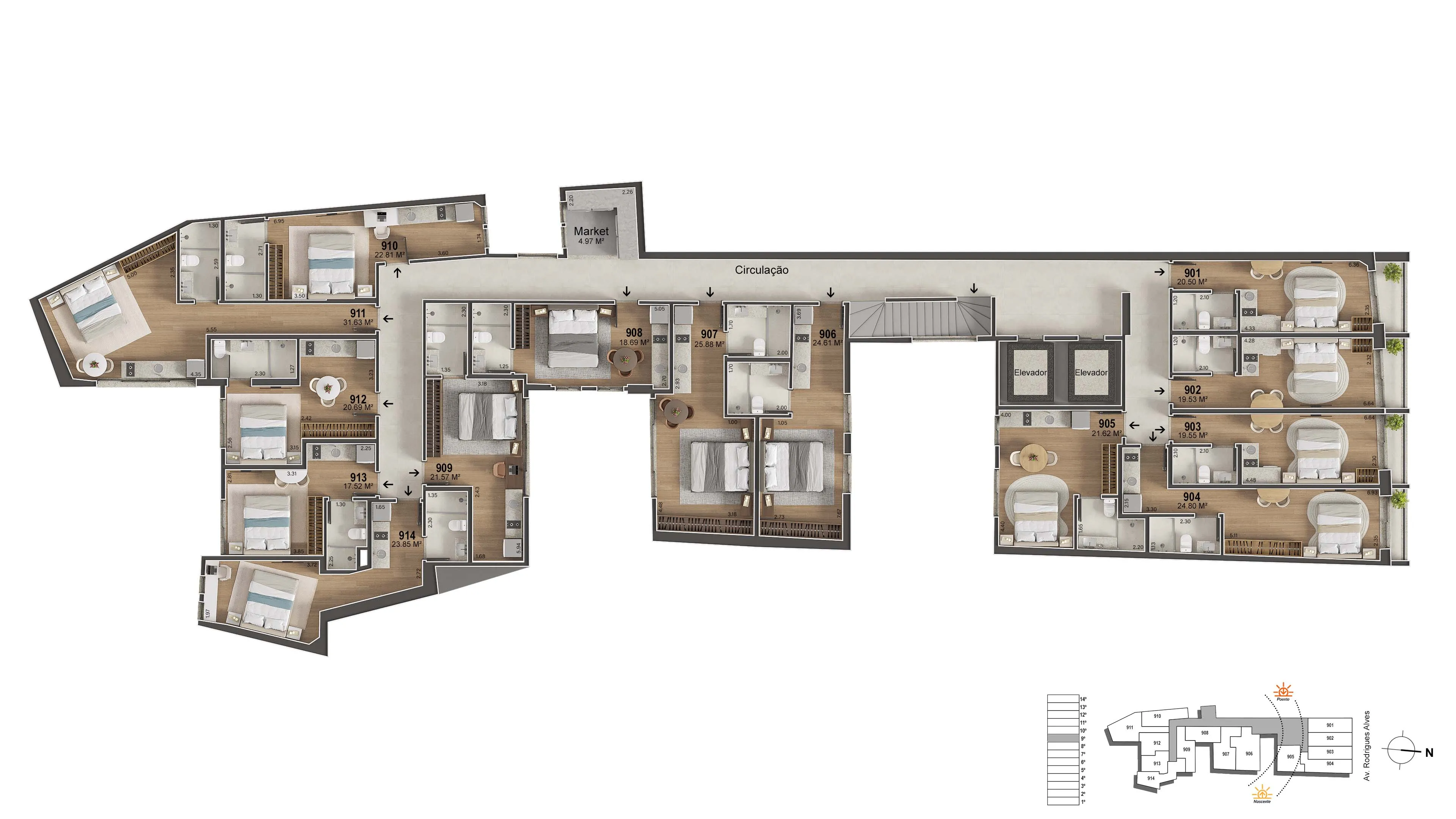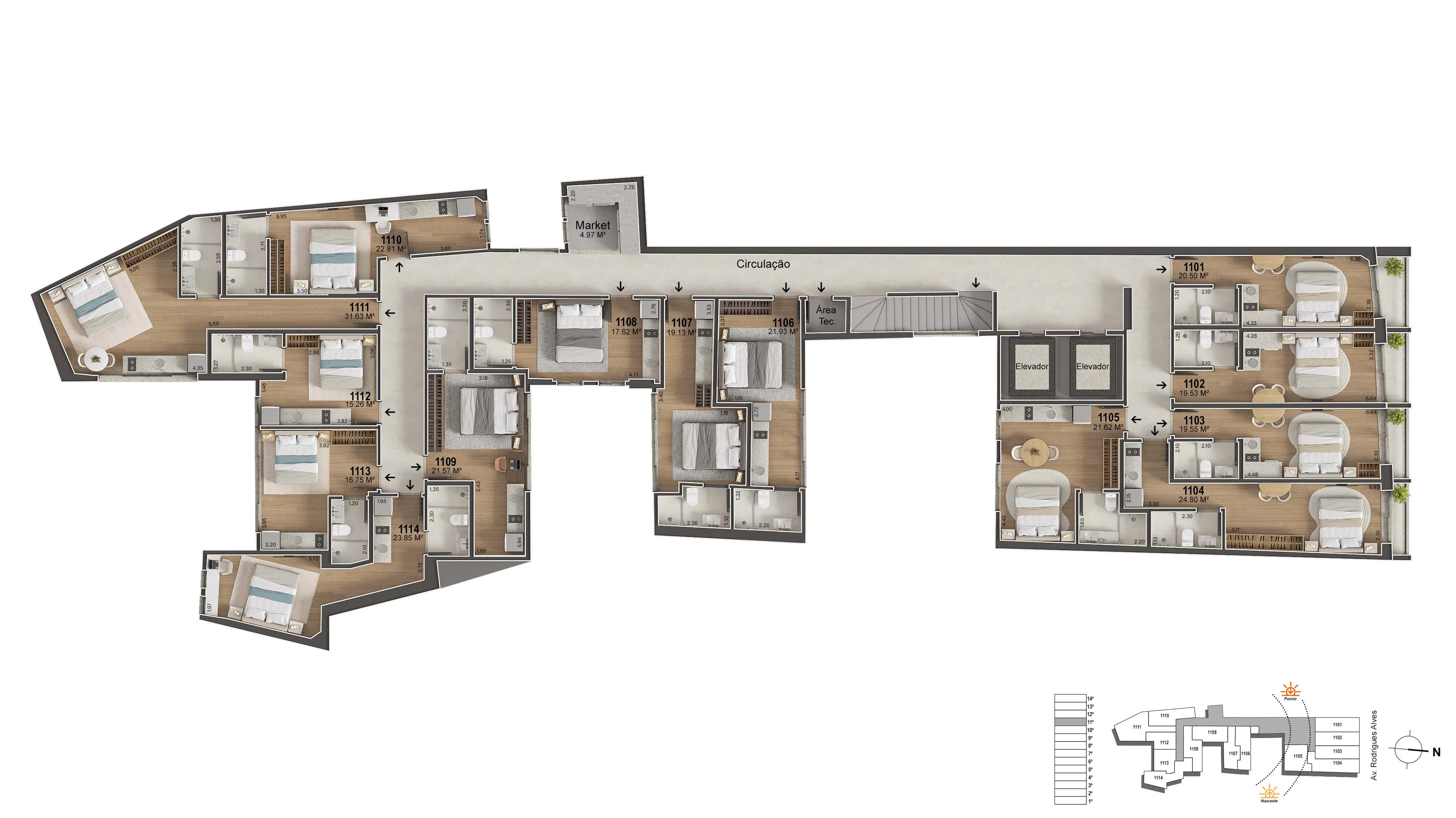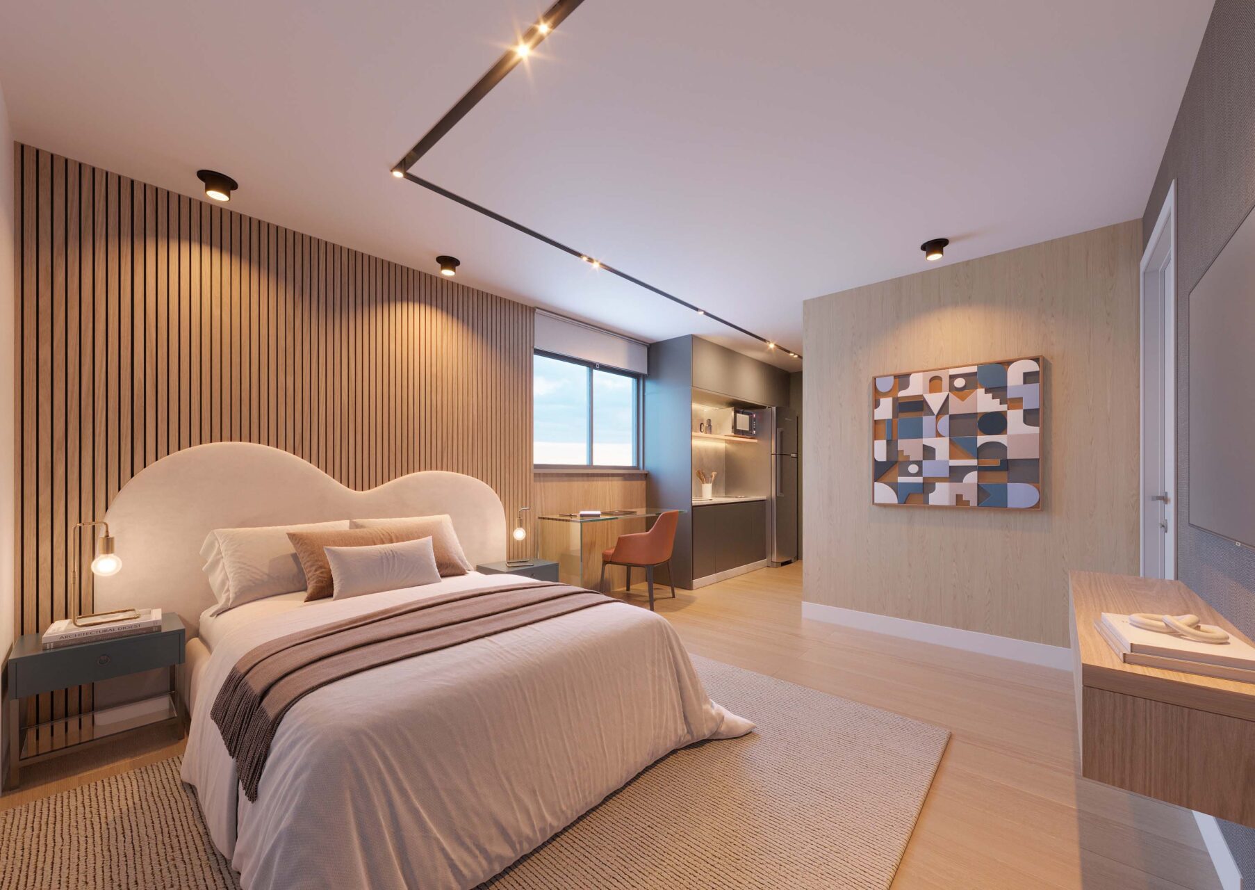 Os studios no centro do AGORA foram cuidadosamente planejados para otimizar cada metro quadrado, oferecendo ambientes compactos, mas extremamente funcionais e acolhedores. Com efeito, com opções que variam de 20 m² e 30 m², as unidades são ideais para quem busca um espaço prático e moderno.