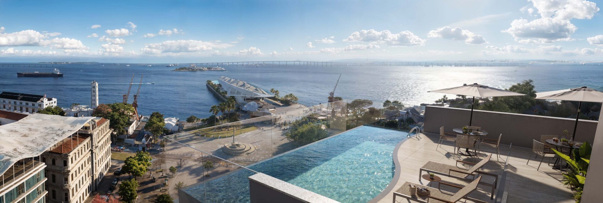Um dos grandes atrativos desse lançamento no Centro é, certamente, sua infraestrutura de lazer e conveniência. No terraço, por exemplo, os moradores poderão desfrutar de uma piscina com borda infinita, proporcionando momentos de relaxamento com uma vista inigualável da cidade e da Baía de Guanabara. Além disso, o empreendimento contará com uma fachada ativa, que integra espaços comerciais no térreo. Dessa forma, o AGORA não apenas oferece um lar, mas também um estilo de vida completo, com opções de lazer e serviços ao alcance das mãos, promovendo uma experiência urbana dinâmica e sofisticada neste lançamento no Porto Maravilha.