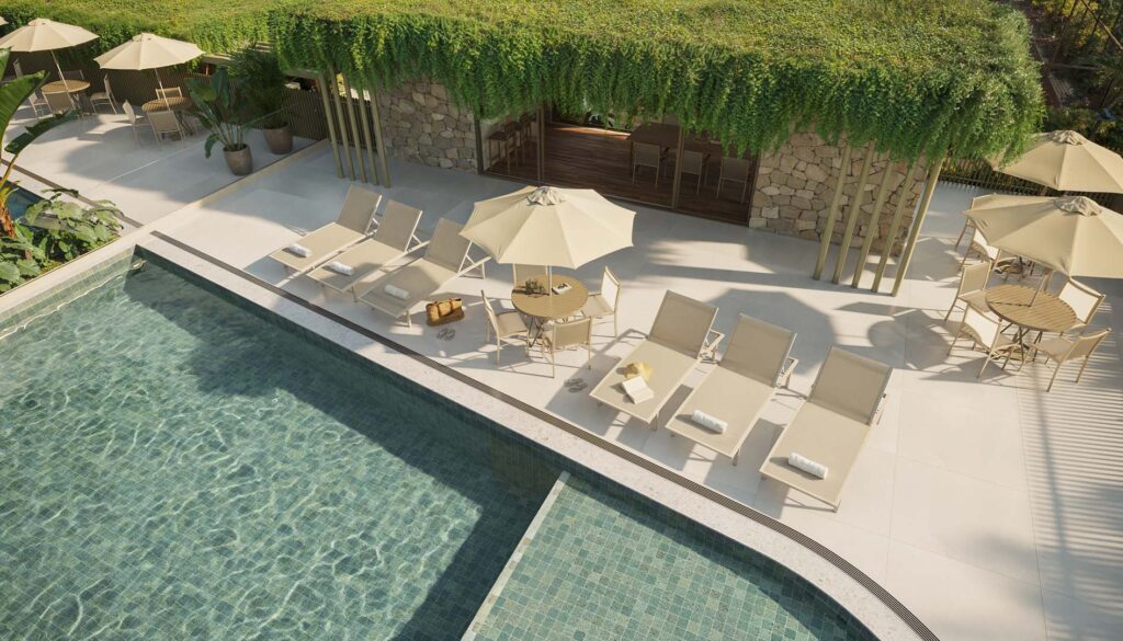 Como diferencial, o empreendimento combina um estilo arquitetônico inspirado no surf, com inovação sustentável — há reaproveitamento de água pluvial e uso de energia renovável.