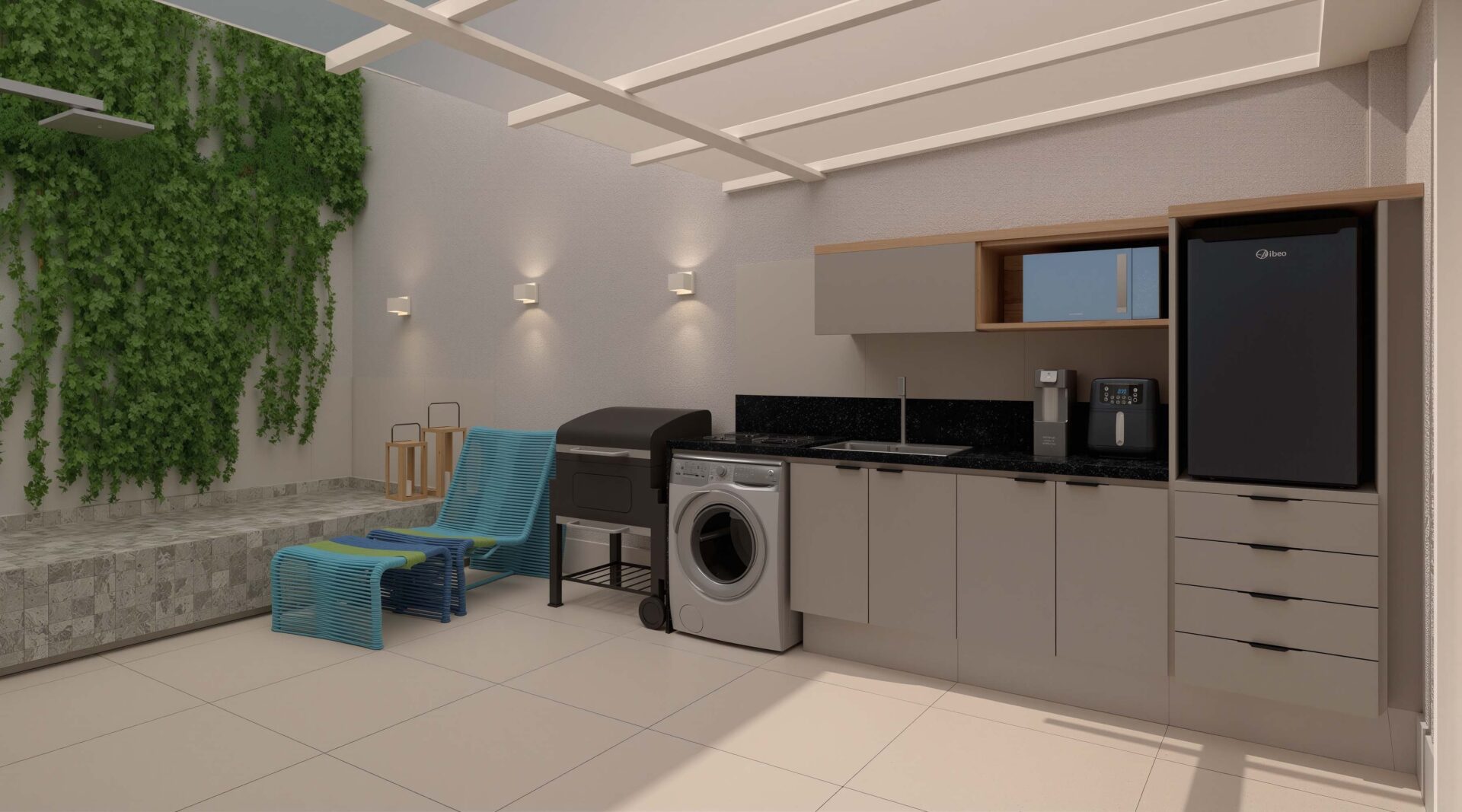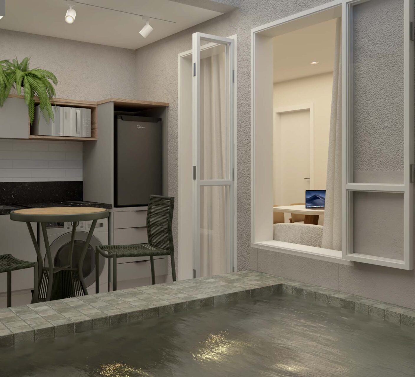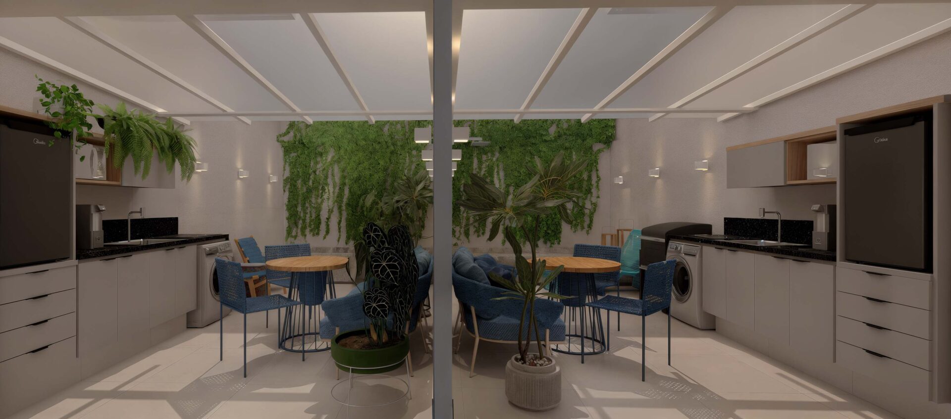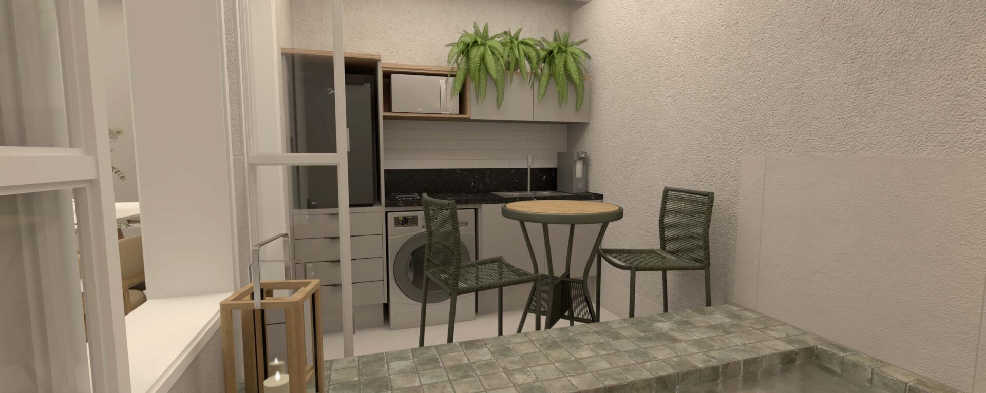 – Gardens com Piscina: algumas unidades no térreo contam com jardins privativos e piscina (Double Studio de 51,47m², o Studio de 38,50m², o Sala/Quarto de 49,00m² e o Double Studio de 100,88m²)