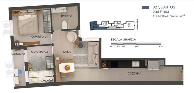 Primeiramente, o Duetto Bambina se distingue pela exclusividade, contando com apenas 12 unidades que equilibram raridade e sofisticação. Dessa forma, cada planta foi meticulosamente pensada para oferecer independência e integração, refletindo uma harmonia precisa entre funcionalidade e conforto. Por conseguinte, entre as opções disponíveis neste lançamento em Botafogo, você encontrará: