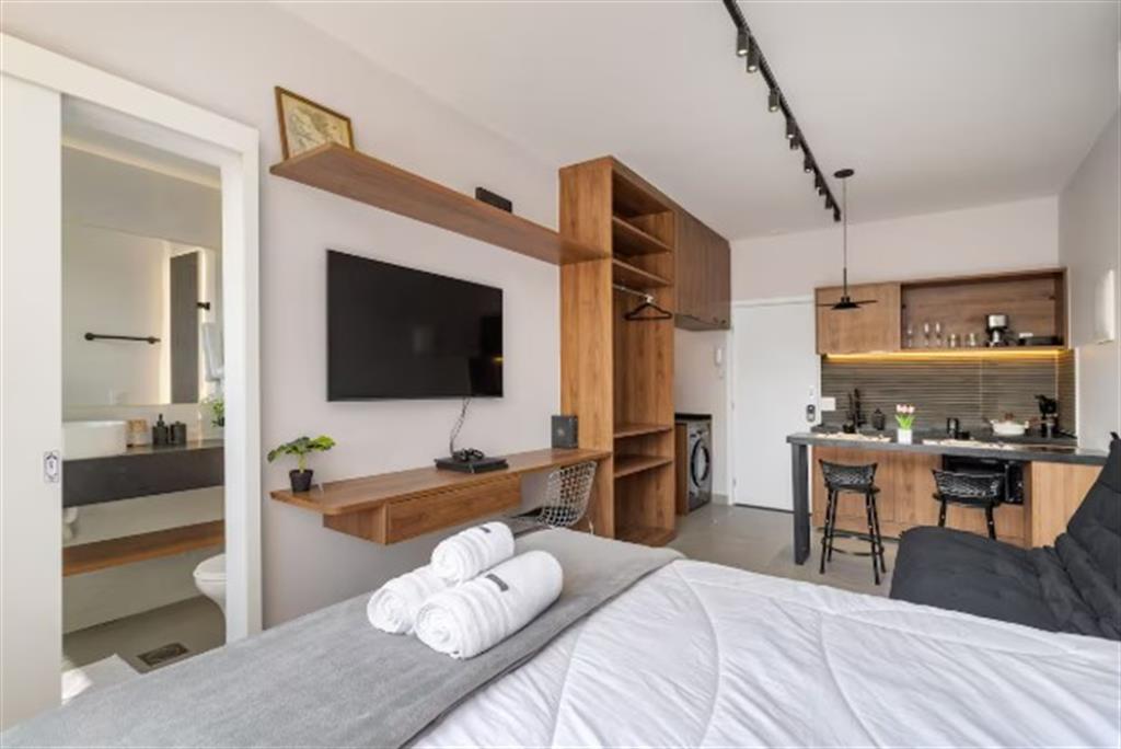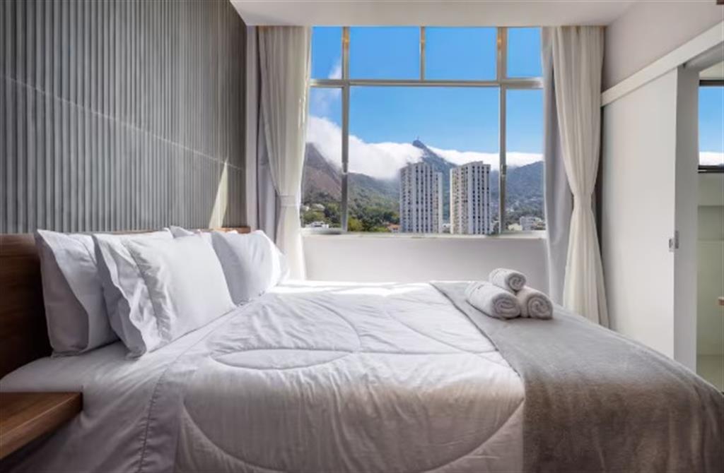 COD 29825 - Studio Premium Porteira Fechada com Vista Cristo!<br><br>Mergulhe no conforto e na praticidade de viver em um studio totalmente renovado, no coração de Laranjeiras. <br><br>Design Inteligente em 25m²:<br><br>Este studio, no 14º andar, oferece uma suíte aconchegante com cama queen, ar-condicionado e TV Smart, tudo pronto para o seu descanso. Desfrute de um banheiro privativo com chuveiro quente e vista para o Cristo Redentor.<br><br>A cozinha completa, equipada com cooktop, geladeira, micro-ondas, cafeteira e todos os utensílios, torna o preparo de refeições uma tarefa simples e prazerosa. A área de serviço conta com máquina lava e seca e varal retrátil, além de ferro de passar.<br><br>Condomínio com Facilidades Exclusivas:<br><br>O prédio oferece elevador para sua comodidade, e para compras rápidas, aproveite o mercadinho de conveniência no próprio edifício. Mantenha a forma na academia (uso pago, mediante cadastro) e conecte-se com a Wi-Fi de alta velocidade inclusa.<br><br>Localização Privilegiada com vasto comécio e serviços - Informações Atualizadas em Um de dezembro Dois Mil e Vinte e Cinco