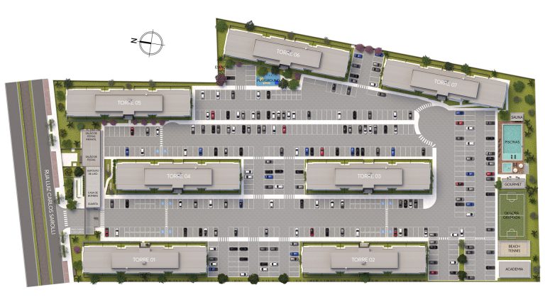 Com um terreno de 25 mil m², o projeto oferece uma implantação surpreendente e uma área de lazer completa, rara para a região. Este lançamento é ideal para quem busca um ambiente sofisticado e tranquilo, com toda a segurança de um condomínio fechado.