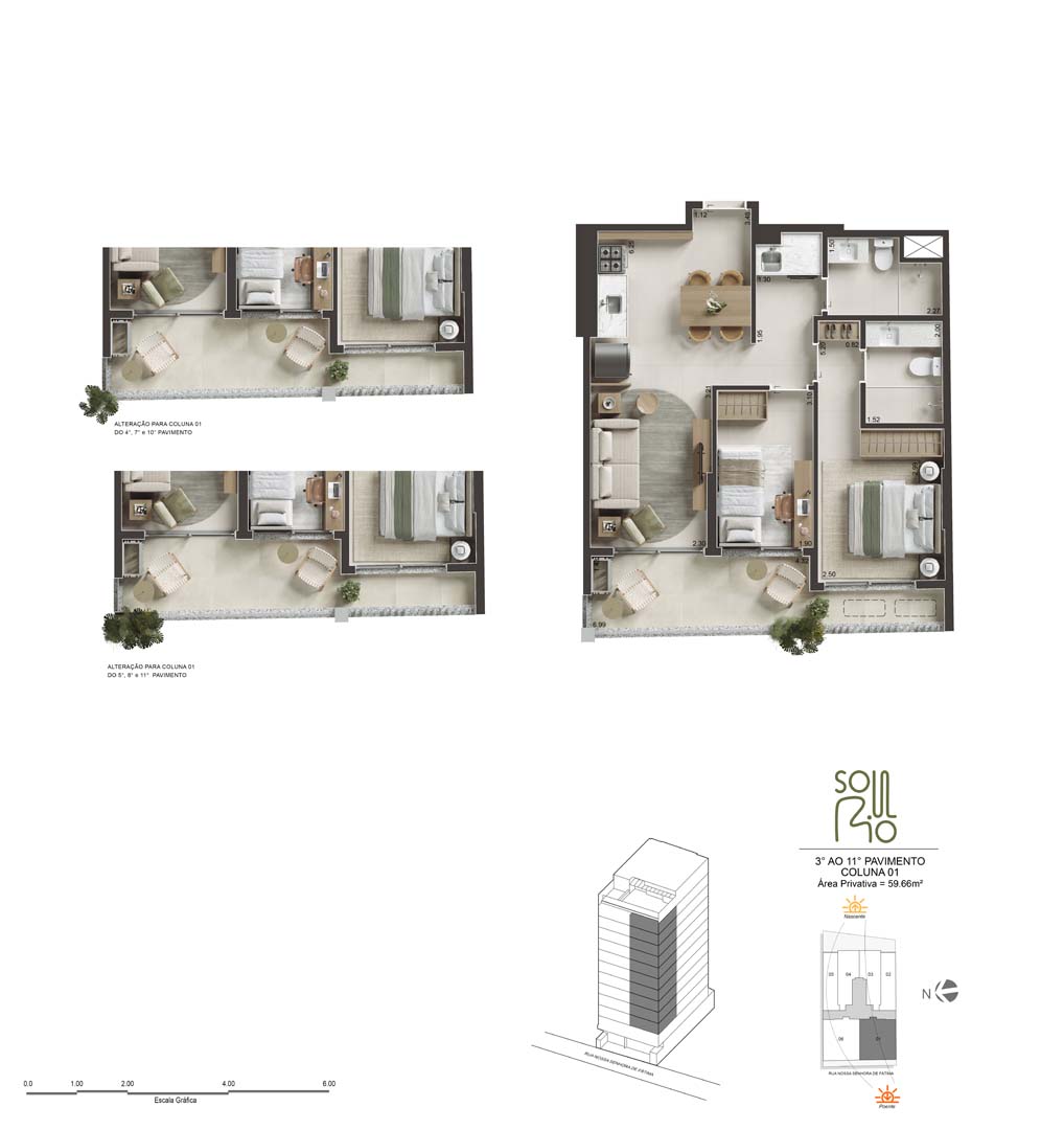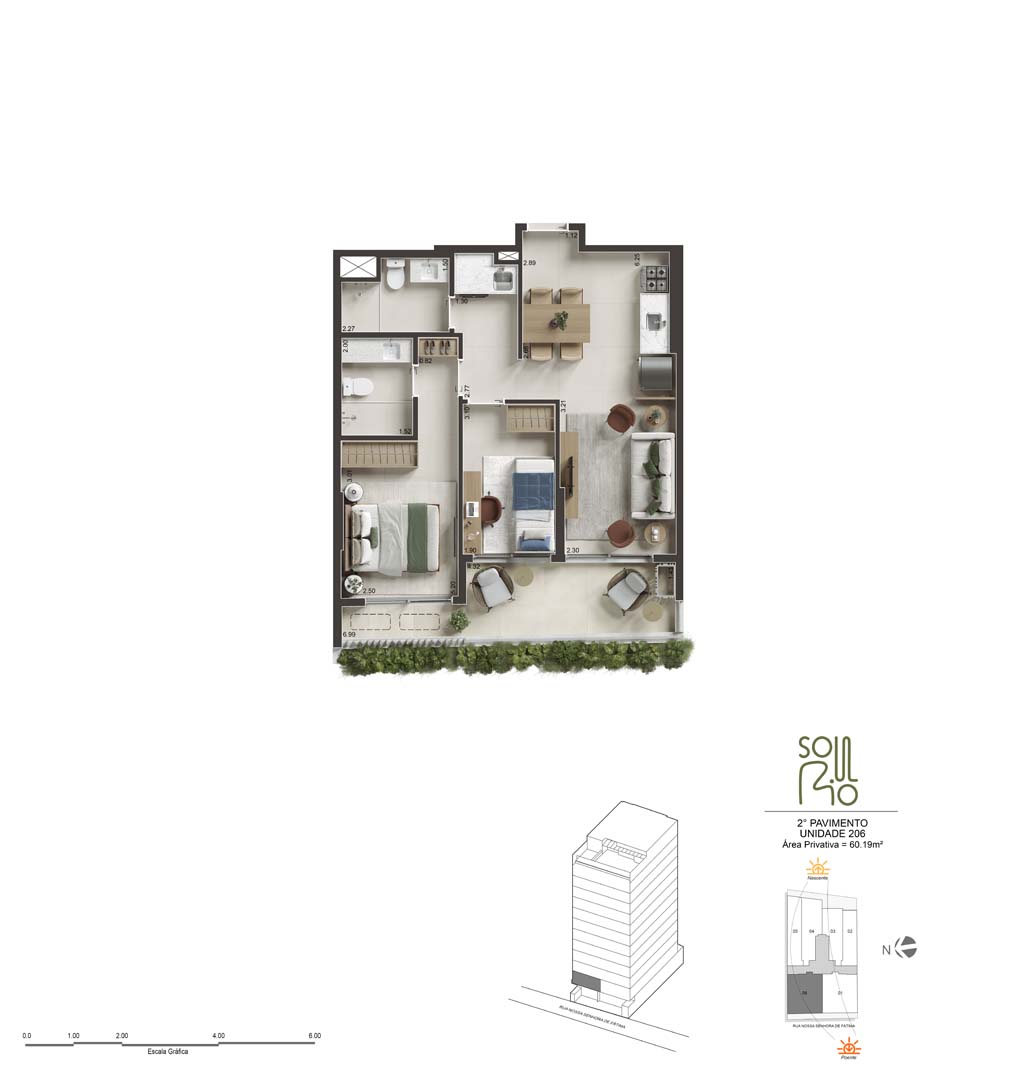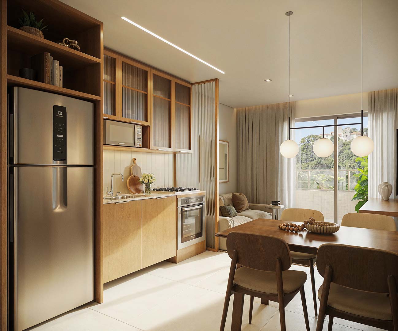 As metragens, dessa maneira, variam entre 33m² e 85m², proporcionando conforto, tranquilidade e modernidade.