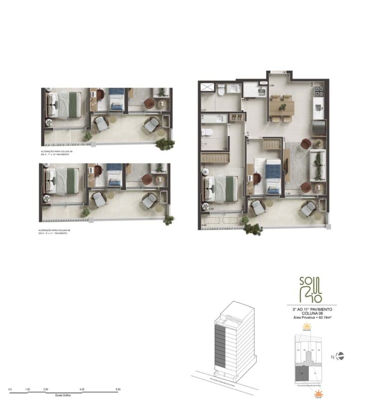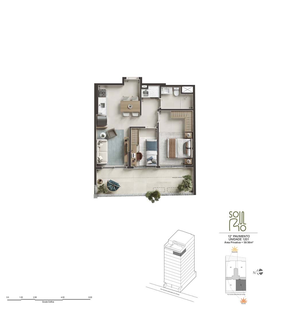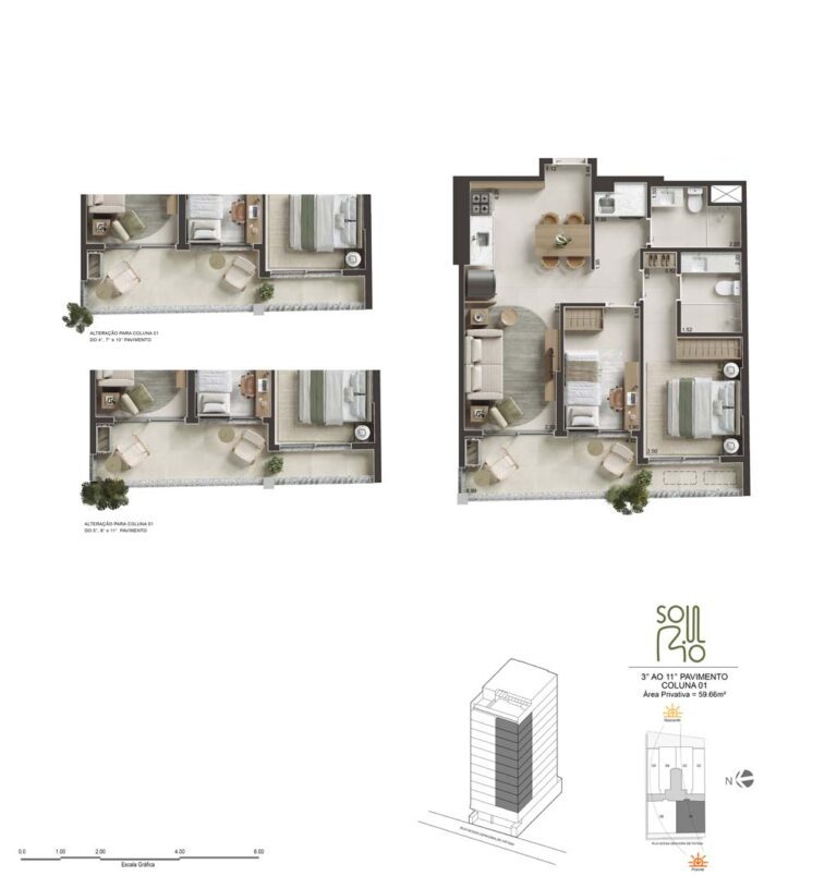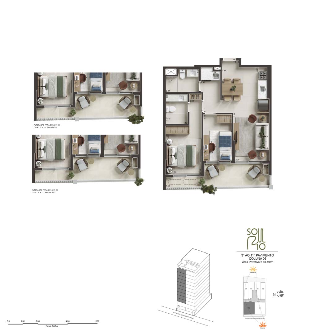 As metragens, dessa maneira, variam entre 33m² e 85m², proporcionando conforto, tranquilidade e modernidade.